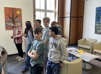 | Am 04.05. und 05.05.2023 führte eine halbtägige Exkursion die Schülerinnen und Schüler der Klassenstufe 7 im Rahmen des G/R/W- Unterrichts ins Dresdner Rathaus. Dort absolvierten die Schülerinnen und Schüler eine digitale Rathauserkundungstour, lernten die Kinder- und Jugendbeauftrage der Stadt Dresden und ihren Aufgabenbereich kennen und konnten mit verschiedenen Stadträten bzw. Fraktionsmitarbeitern über politische Themen diskutierten. Einige Schülerinnen und Schüler konnten die Fraktionsräume der Grünen, der Dissidenten, der SPD, der FDP und das Büro des Oberbürgermeisters der Stadt Dresden Dirk Hilbert besichtigen. Im Büro des Oberbürgermeisters warf ein Schüler mit dem neu im Rathaus installierten Direktor Kai Schulz sogar noch ein paar (Foot-) Bälle.