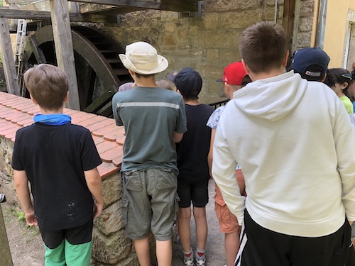 Bei der Erlebnis-Mühlenkundestunde sind wir durch die über zweitausendjährige Geschichte der wasserbetriebenen Mühlen gegangen und haben erfahren, dass es in der Geschichte nicht nur die Mühlen zum Mehl malen, sondern beispielsweise auch die Säge-, Öl- und Papiermühlen gab. Wir konnten den gesamten Prozess vom Mühlgraben über den Mühlteich, natürlich auch dem Mühlrad bis zu den Mahlsteinen am Ende anschauen, erleben und nachvollziehen und einmal mehr feststellen, wo überall die Natur und physikalische Gesetze uns helfen, das Leben zu erleichtern.